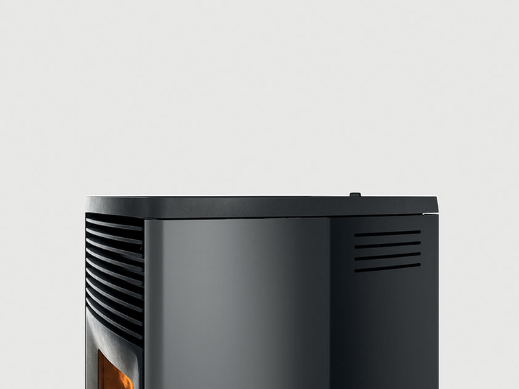 Dies ist ein luftführender Ofen: Das klassische Modell eines Pelletofens. Ein einziges Gebläse, leistungsstark, aber leise, verteilt die warme Luft optimal in dem Raum, in dem der Ofen aufgestellt ist, und macht ihn in wenigen Minuten warm und behaglich. Je nachdem, wie gut das Haus isoliert ist und wie die Räume verteilt sind, kann dieser Ofen auch sehr große Räume beheizen. Sie wählen die Ventilationsleistung nach Ihren Bedürfnissen. Ein warmer und kräftiger Luftstoß, um schneller zu heizen oder ein kaum hörbares Surren, wenn nur die Temperatur konstant gehalten werden soll.