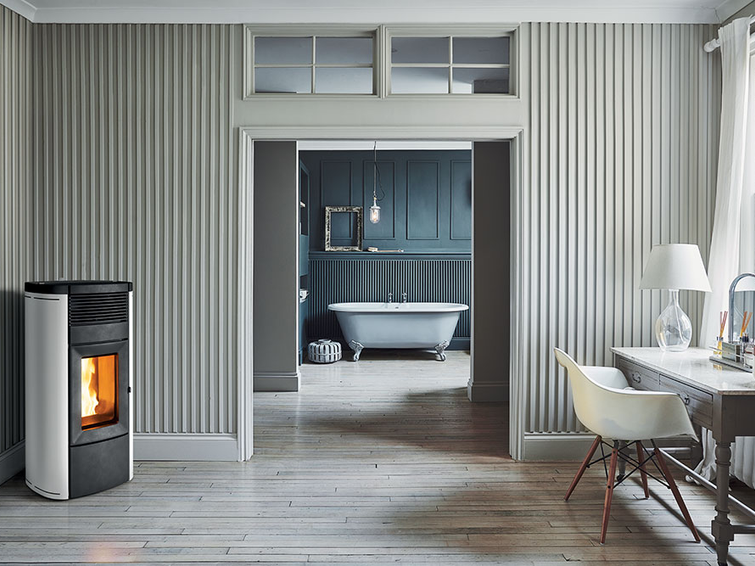 Poêle à pellets en acier, disponible version ventilée, canalisable ou hydro
