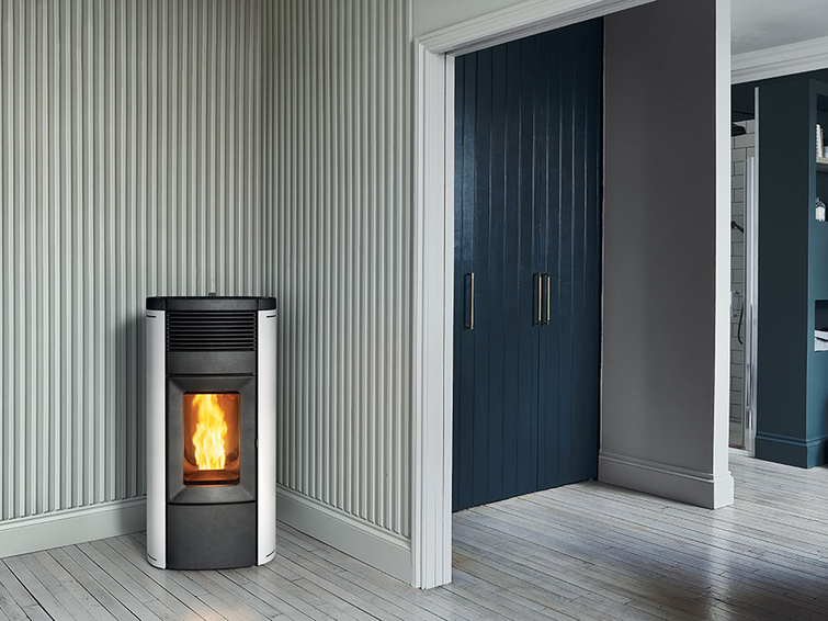 Il s'agit d'un poêle ventilé, le modèle le plus classique de poêle à pellets. Un seul ventilateur, puissant mais silencieux, distribue de manière optimale l'air chaud dans la pièce où le poêle est installé, la rendant ainsi chaude et confortable en quelques minutes. Selon le degré d'isolation de la maison et la répartition des espaces, ce poêle peut chauffer même de très grandes pièces. Vous choisissez la puissance de ventilation en fonction de vos besoins. Un souffle chaud et puissant pour chauffer plus vite ou un murmure à peine perceptible, si vous devez seulement maintenir la température.