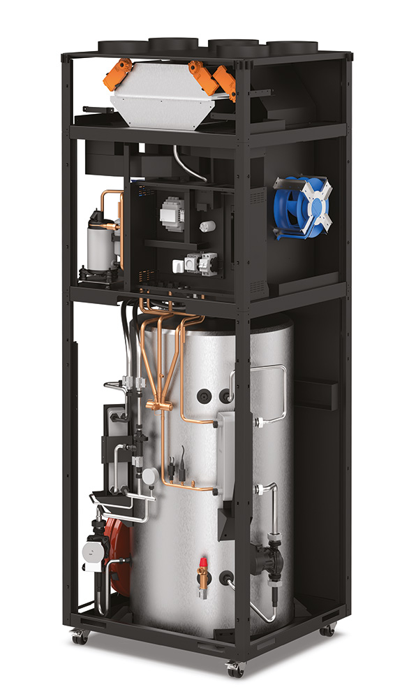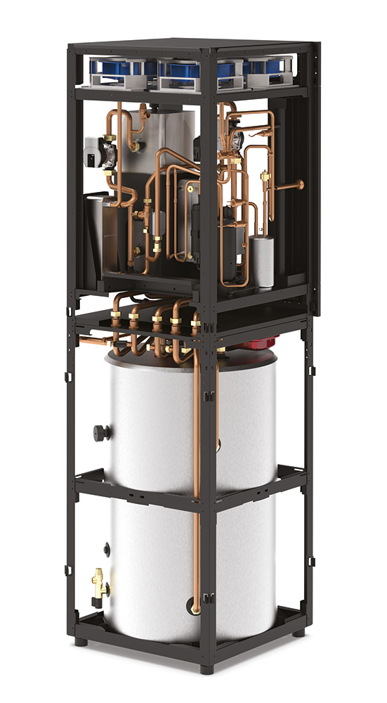 Kompakte „All-in-One“- Maschinen haben alle Funktionen integriert, einschließlich Umwälzpumpe Warmwasser und Systemmischung.